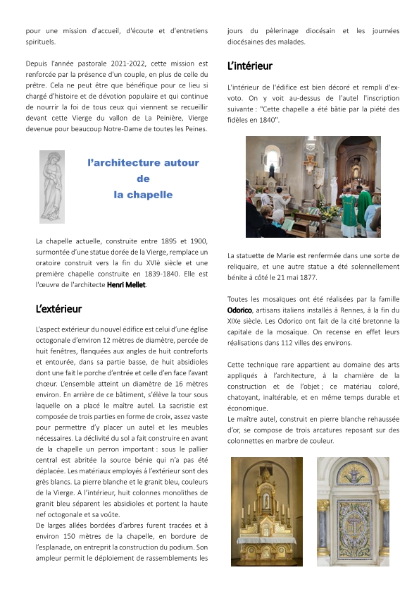 À partir de 1842, le pèlerinage de La Peinière est approuvé par l’Archevêque de Rennes et un chemin de croix est érigé.