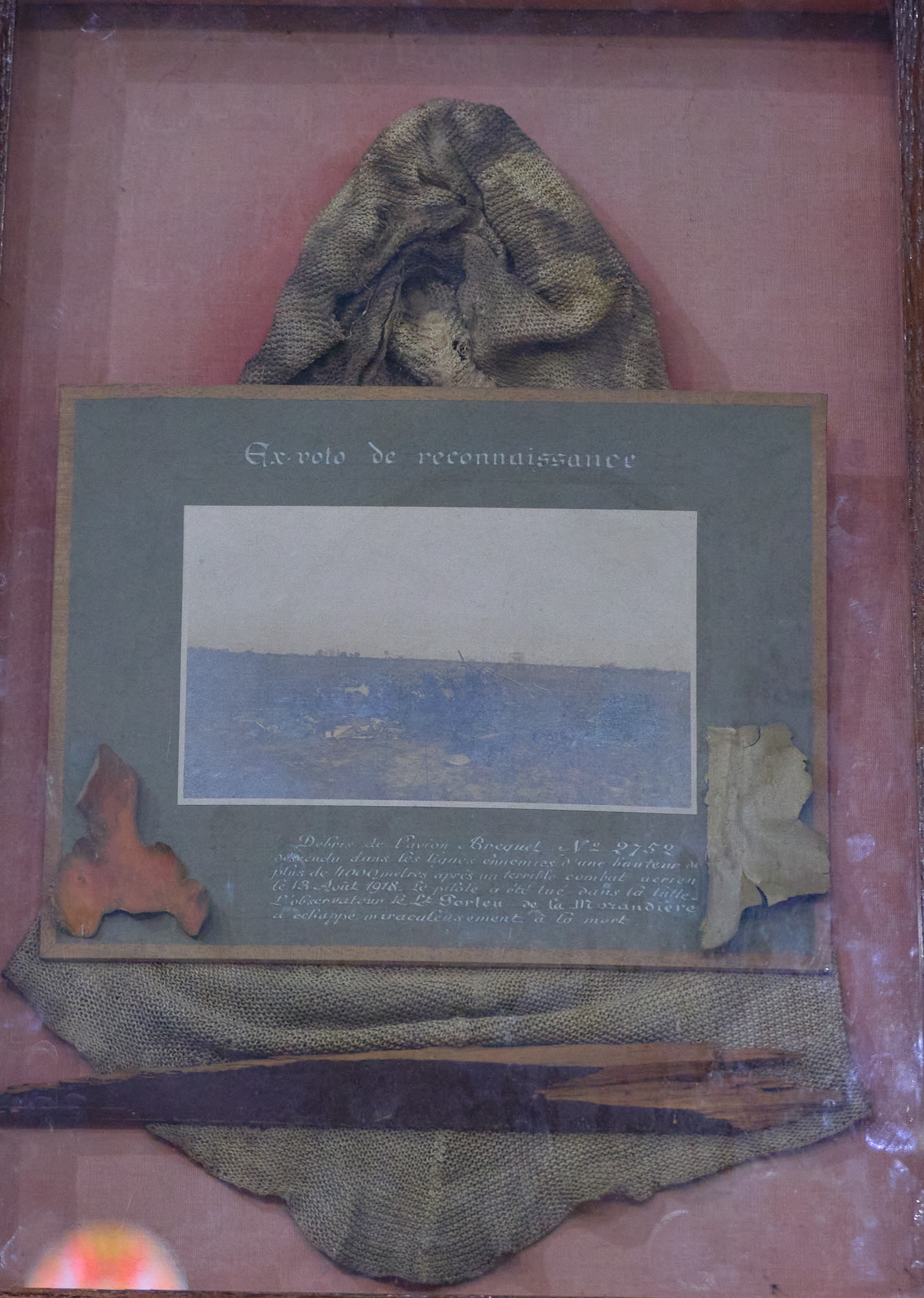 La 1re chapelle de 1840 accueillait déjà de nombreux exvotos pour remercier Marie des grâces et des guérisons obtenues. Certains d’entre eux sont particuliers comme celui présentant une photo et des débris d’un avion écrasé. Il émane du lieutenant Francis Porteu de la Morandière qui fut miraculeusement sauvé du crash de son Bréguet en 1918. Pendant la chute de l’avion, il pria Notre-Dame de La Peinière et lui promit de se rendre à pied au sanctuaire s’il s’en sortait vivant. Il accomplit sa promesse et fit, pieds nus, les 25 km qui séparaient la demeure familiale du sanctuaire.
