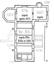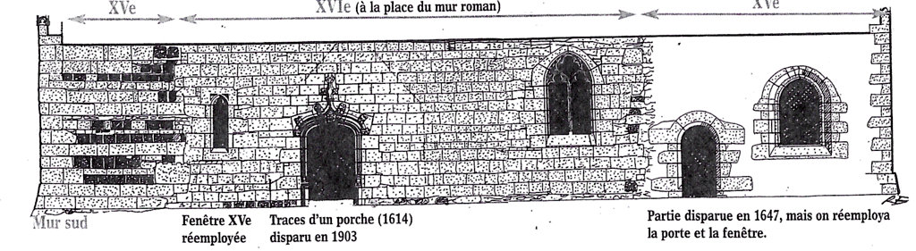 Le chapitreau – porche ouvert, au de l’église, pourvu de bancs latéraux où se réunissait le général de paroisse – a été détruit au début du XX° siècle. Le général de paroisse était l’organe administratif de la paroisse, composé du recteur, de paroissiens, du juge et du procureur – c’est l’ancêtre du conseil municipal – qui tenait entre autres les registres d’état-civil.